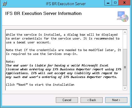 It is required to install IFS Business Reporter prior to installing the IFS Business Reporter Execution Server.