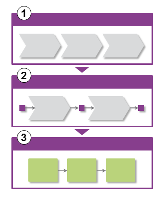 solution at the top level (level 1), business process in the middle (level 2) and the the details specific for IFS Applications as activity diagrams