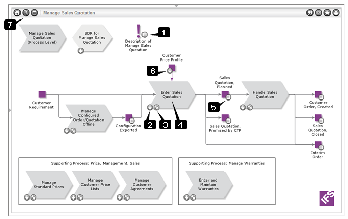 down. A process symbol in front of the title means that it is a business