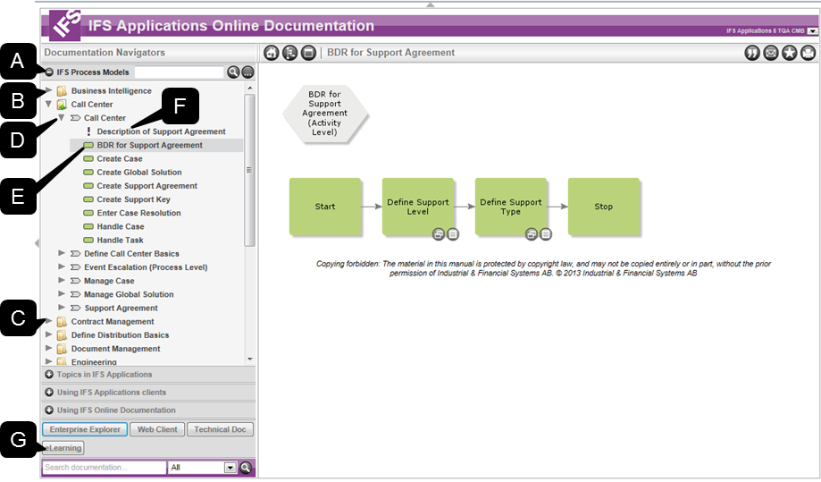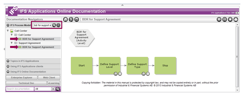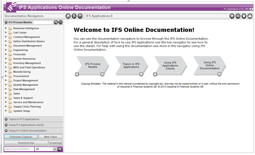When the IFS Online Documentation is opened from a browser, the IFS Process Models navigator