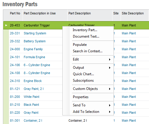 actions available for customer orders than inventory parts etc. Some menu items link to other parts