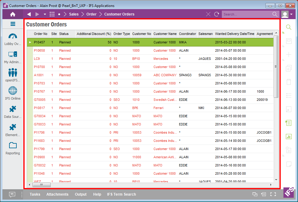 When you open an IFS Application page it's opened in the work area. Usually you work with