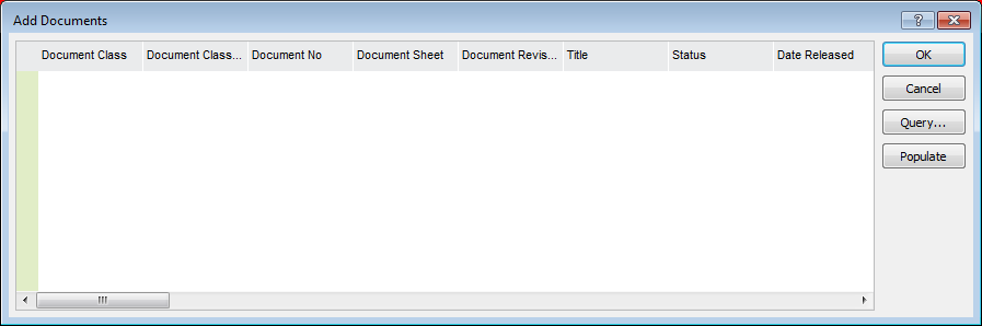 In this dialog you search for existing documents in Document Management. Click Search button to open the search dialog. Select a document and click OK button to connect.
