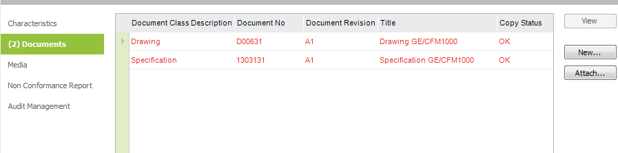 Number of documents connected to current object is presented within parentheses, e.g. (2) Documents. Click the Document link to view information about the documents.