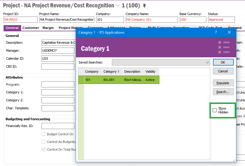 By selecting 'Show Hidden' checkbox, you can make both Active and Hidden records visible. However, the LOV dialog will not list records with Blocked state. When it comes to Date Interval based Validity, no additional checkbox will be visible and you will not be able to select records that fall outside the valid date range.