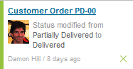 Once the change has happened you immediately get a notification sent to the Streams panel placed in the bottom left corner of the application. You open this by clicking on the Streams icon or pressing Ctrl + F4 on your keyboard. On the Streams notification you can read information about the change, the note, when the change happened and who made the change. You can navigate to the object by clicking the link. The Streams panel also includes more notification types from IFS Talk, Tasks and Events. More information about this is found in the documentation for Streams panel.