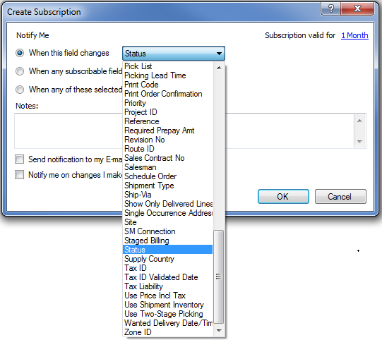 The subscription is valid for 1 month as default, you can click on the link to change the valid time to 1 week, 3 months or 1 year. A special 'One-Time' notification can also be selected where you will only be notified about a change just once, and after that the subscription will be removed automatically. A reminder is sent to the Streams panel if there is an expiring subscription that you can choose to extend if needed.