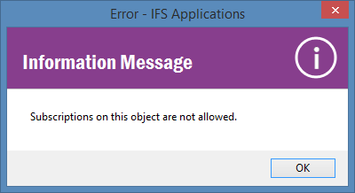 An IFS Applications Page with an object must be open. Due to the underlying technical structure there are certain pages where adding a subscription does not work. To help the end user the framework will disable "Subscription" context menu option and the page toolbar button in those pages.