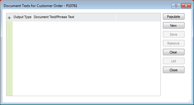 5. In the Notes column, enter the text that will be printed, or use the List button to select an existing phrase.