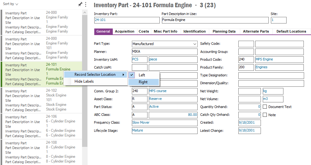 Figure 1: RMB Menu Option ‘Record Selector Location’.