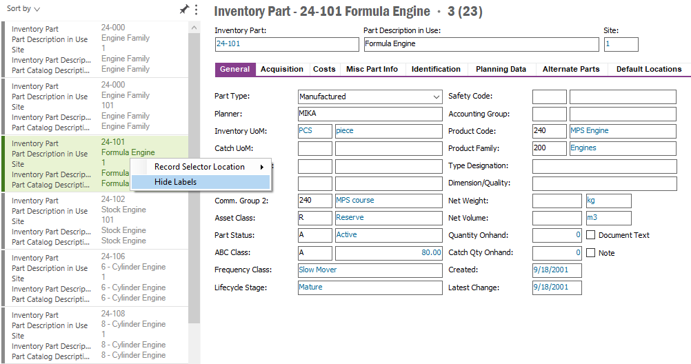 Figure 3: RMB Menu Option 'Hide Labels'.