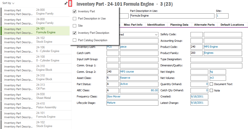 Figure 5: More Options icon on the top right corner of the Record Selector.