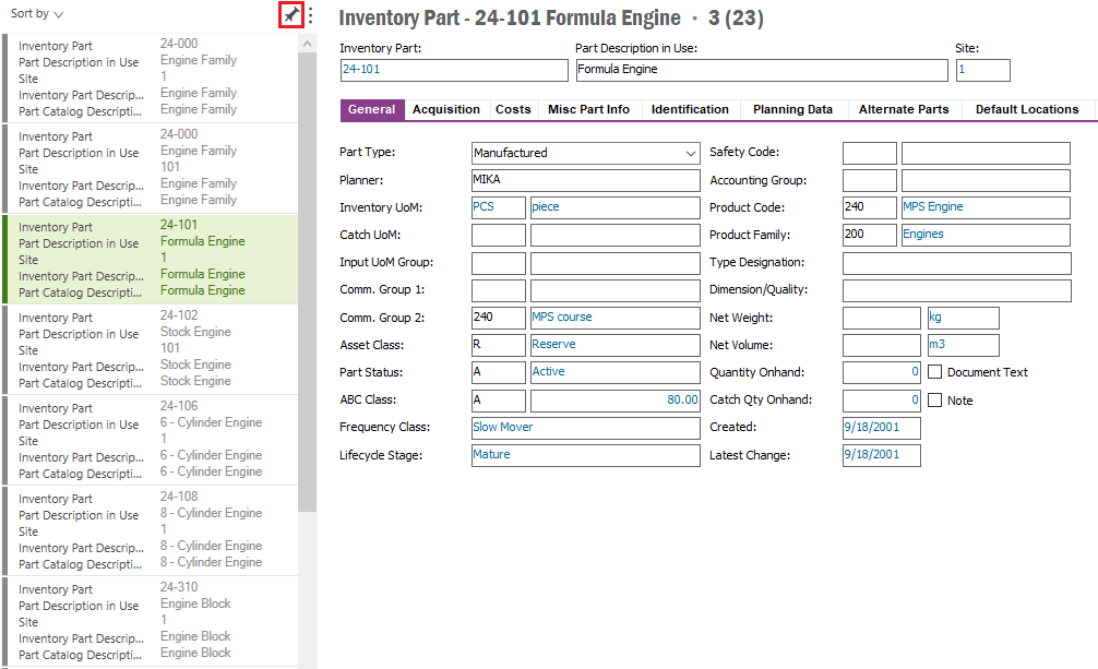 Figure 8: Unpin the Record Selector using the Unpin Button.