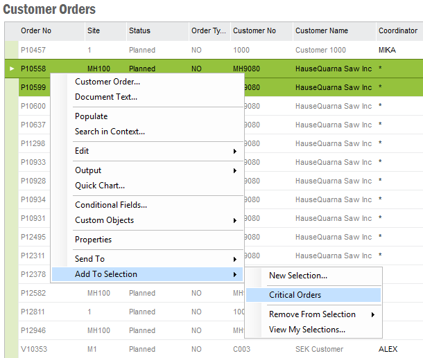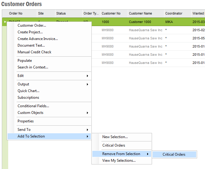 Use Selections to name a set of objects you would like to revisit later, e.g. a set of supplier invoices, customers etc.. The contents of your selection