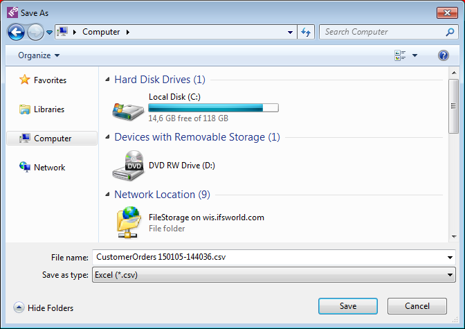 Save As allows you to save information from an IFS Applications page to a file. There are two different options to use this function:
