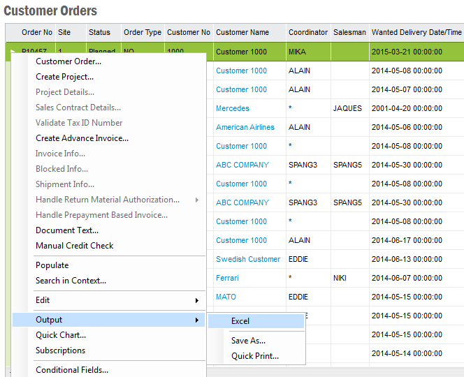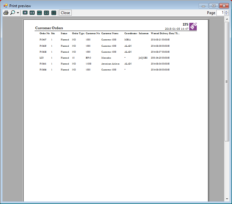 Use Quick Print to quickly print out information from an IFS Applications table/overview page. The printout will display conditional formatting rules if defined, read more about Conditional Formatting.