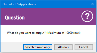 Specify the settings you want to use for the export and click OK button. You will then be asked if you want to select all rows or the selected rows to be sent to an output.
