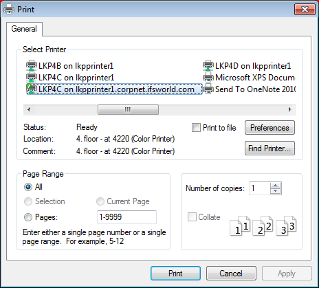 Select printer, page range, number of copies and click Print button. The Preview dialog below is displayed: