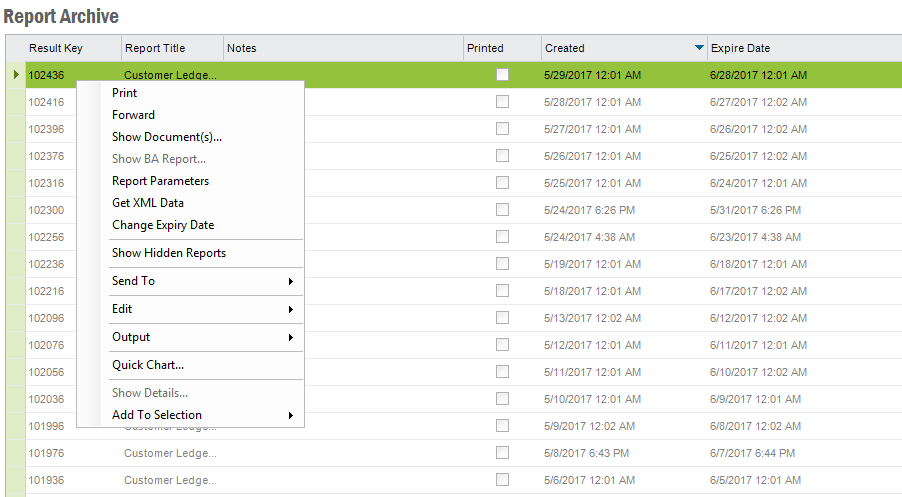Figure 2: Archived Reports Context Menu