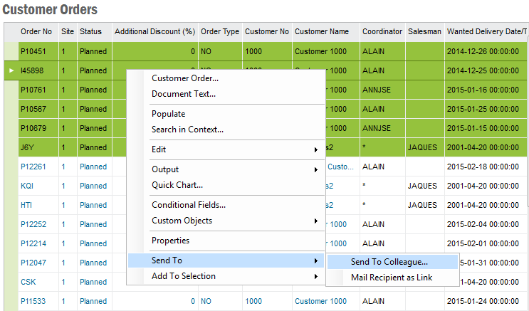 Open an IFS Applications page and populate with the object(s) you want to send. Right-mouse click to open the context menu and select Send To/Send to Colleague or Send To/Mail Recipient as Link. Note that if you are working in a table/overview page, highlight the object(s) you want to send before selecting the option.
