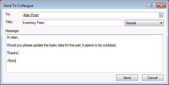 The option to send information to colleagues is available in all IFS Application pages, this is a quick and easy method to share information with other users. The messages includes links to one or several objects in IFS Applications.