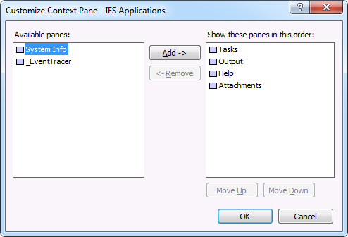 Right click on the Context Pane, and select Customize to open the Customize Context Pane dialog.