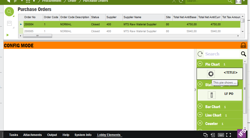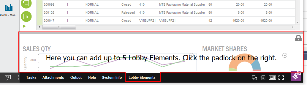Add Lobby elements to the context pane by drag and drop them or select and doubleclick.