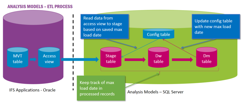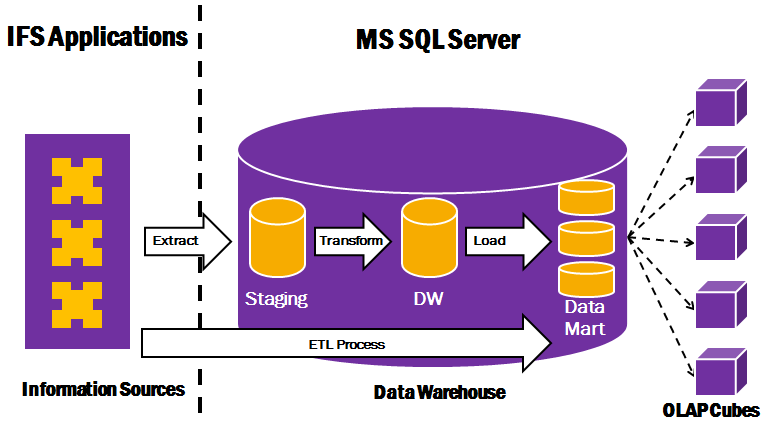 IFS Analysis Models consists of a framework that supports an ETL process, transferring data from IFS Applications to a Data Warehouse hosted in MS SQL Server.