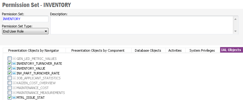 IAL Objects are granted and revoked in the IAL Objects tab. Set the checkboxes for the IAL Objects you want to grant and unset the checkboxes for the IAL Objects you want to Revoke.