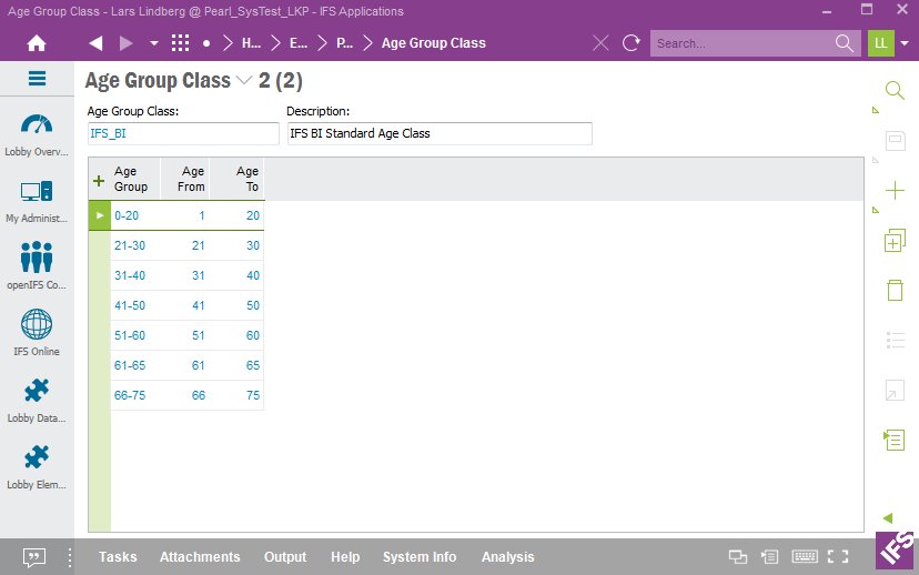 Use the IFS EE form Age Group Class to define the necessary data.