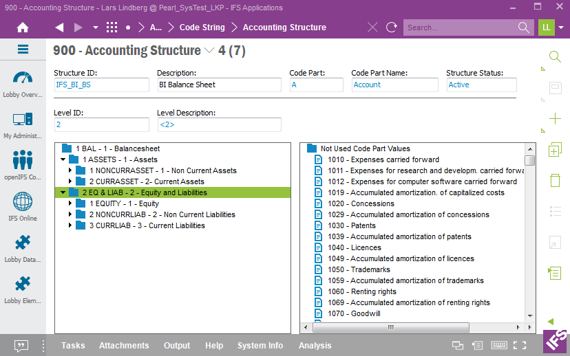 Accounting Attributes are defined for the selected source company in the forms Code Part Attributes, Attribute Value and Connect Attribute in IFS EE.