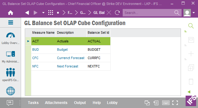 This page gives information on how to set up basic data in IFS Applications in order to make the OLAP cubes in the IFS Analysis Models work properly. It is also important to point out that the basic data configuration is closely related to configuration of lookup data.