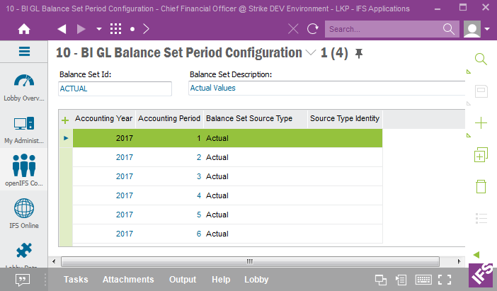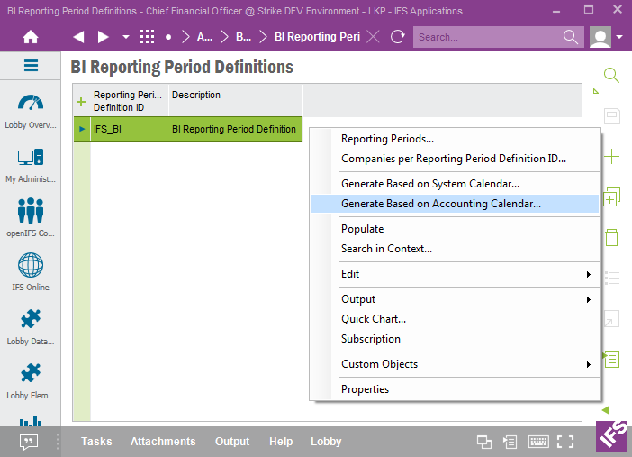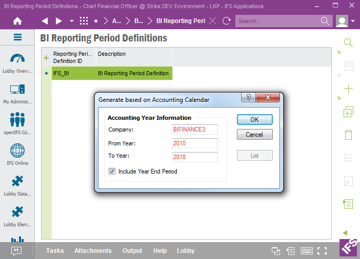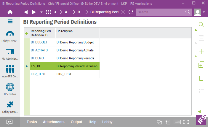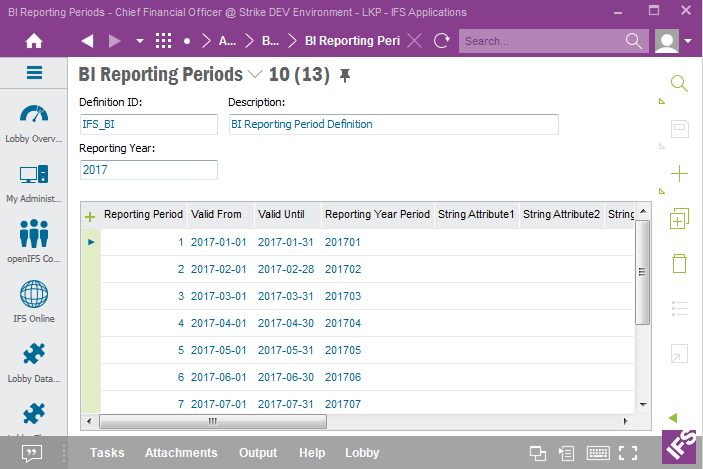 Start by defining the Reporting Period Definition IDs to be used in the BI Reporting Period Definitions form in IFS EE.