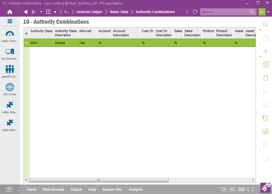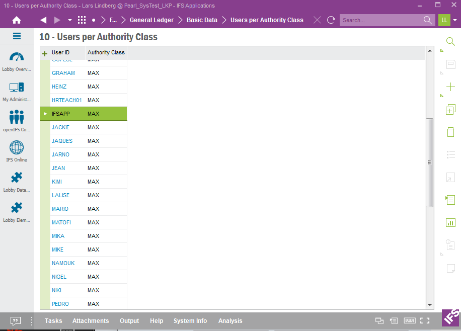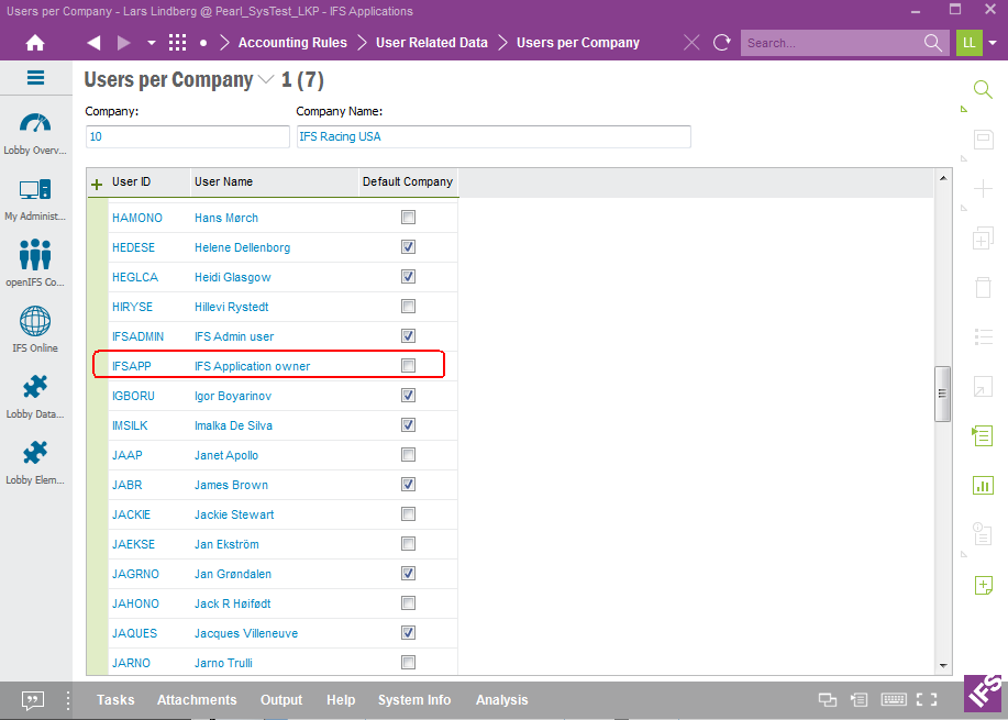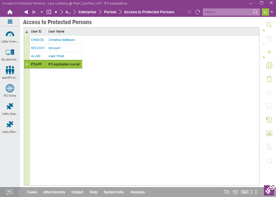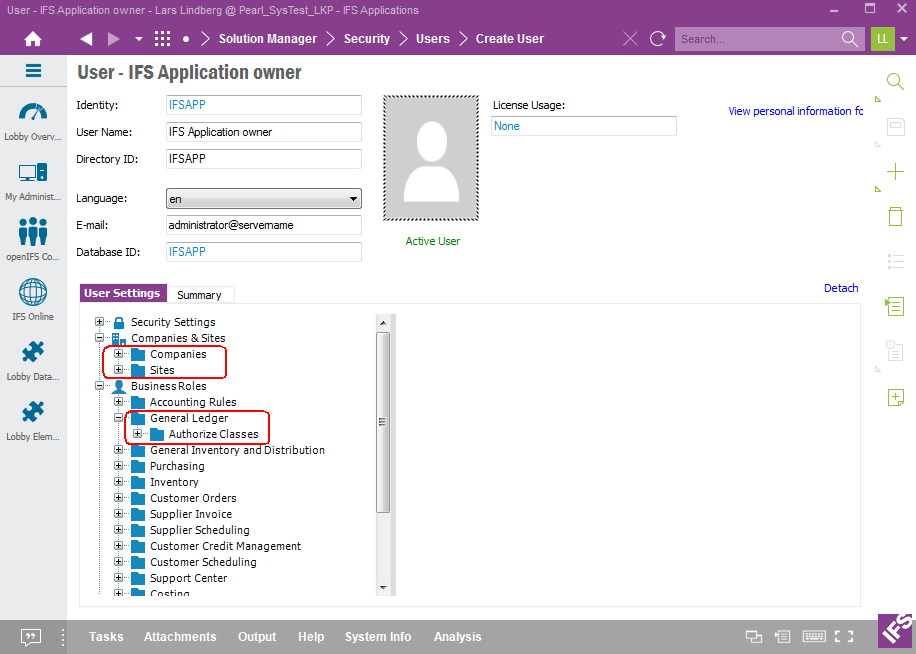 Note: The <IFSINFO> user should have full data access. The Application Owner however will by default NOT be defined to have access to all data in IFS Applications. For this user it is therefore vital to make sure that the Application Owner is granted data access.