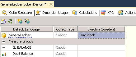 For the cube itself as for each dimension there is a tab where translations can be defined for each language to be supported. If a customer wants to get cube attribute texts translated to another language than the default, English, it is necessary to go through the contents of the cube and supply translations. As help it is of course possible to look into IFS clients to figure out the appropriate text. This applies of course only if the context to be translated exists as an attribute in a IFS client. There are many translation contexts in a cube that have no corresponding contexts in IFS Applications.