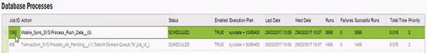 It is possible to examine the background process that produces Push Queues and Synchronization Tasks to ensure it is working correctly in IFS Applications (Mobile_Sync_SYS.Process_Push_Data). The process will indicate whether there have been any failures to process data, Time last run, and time taken to run the process. This would also help in identifying any slowdown in database processing as an impact on Synchronization delivery.