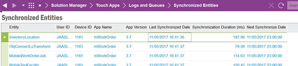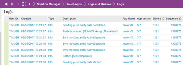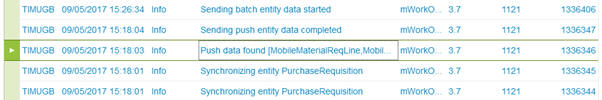 It is possible to view the Mobile Logs related to a sync task, which provides a further level of information in relation to the sync task. The user/device logs will tell you when processing started for a specific entity in the sync task, and when processing finished. This means that it is possible to troubleshoot whether custom changes to a database entity are affecting the Synchronization process, which might be visible if for example the changes are increasing the processing time for a specific entity, compared with other elements of the sync task.