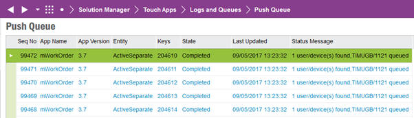 In the Push Queue, it is possible to see the creation of push queue records for every IFS Application database entity that is changed, and is to be synchronized to Mobile. There have been several changes to this in recent versions: