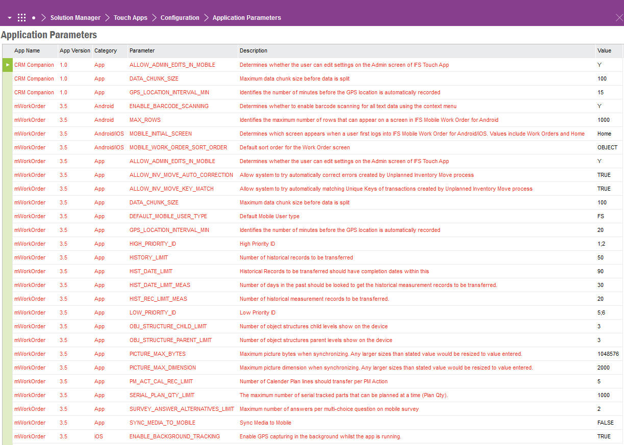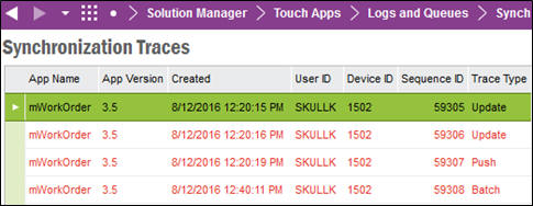 Permissions to run Synchronization Tracing are enabled when the user is granted the FND_TOUCHAPPS_SYNC_TRACE permission set, which grants the user the system privilege of “Debugger”. With this in place it is possible to setup tracing for a single device in IFS Applications. This can be found in either Mobile User Details or in Installed Apps/Devices which will generate a trace including all the information about a client connecting, and all the database processes running in relation to that client, including the PL/SQL Statements that are being run. This can provide a large amount of information in relation to specific client issues. Given the amount of data this generates, it is important to run the Schedule Task to clean-up Synchronization Traces if this is left running for a long period. Also, due to the volumes of data generated by a trace, enabling tracing for all devices in a large device community is NOT recommended. It is recommended that tracing is set for devices with issues only.
