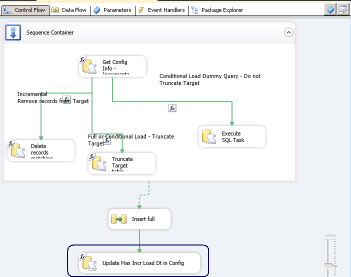 The Execute SQL task that gets configuration settings should be updated to select the current value the column Last_Max_Incr_Load_Dt_Str from the configuration table for the current source.